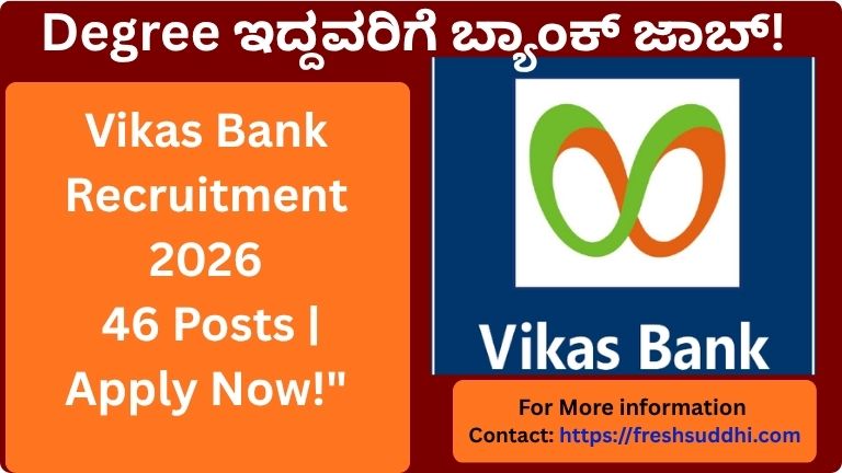 Vikas Bank Recruitment 2026 – Degree ಇದ್ದವರಿಗೆ ಸುವರ್ಣಾವಕಾಶ! 46 ಹುದ್ದೆಗಳ ಭರ್ಜರಿ ನೇಮಕಾತಿ ಕರ್ನಾಟಕದಲ್ಲಿ ಬ್ಯಾಂಕಿಂಗ್ ಕ್ಷೇತ್ರದಲ್ಲಿ ಕೆಲಸ ಮಾಡಲು ಕನಸು ಕಾಣುತ್ತಿರುವ ಅಭ್ಯರ್ಥಿಗಳಿಗೆ …